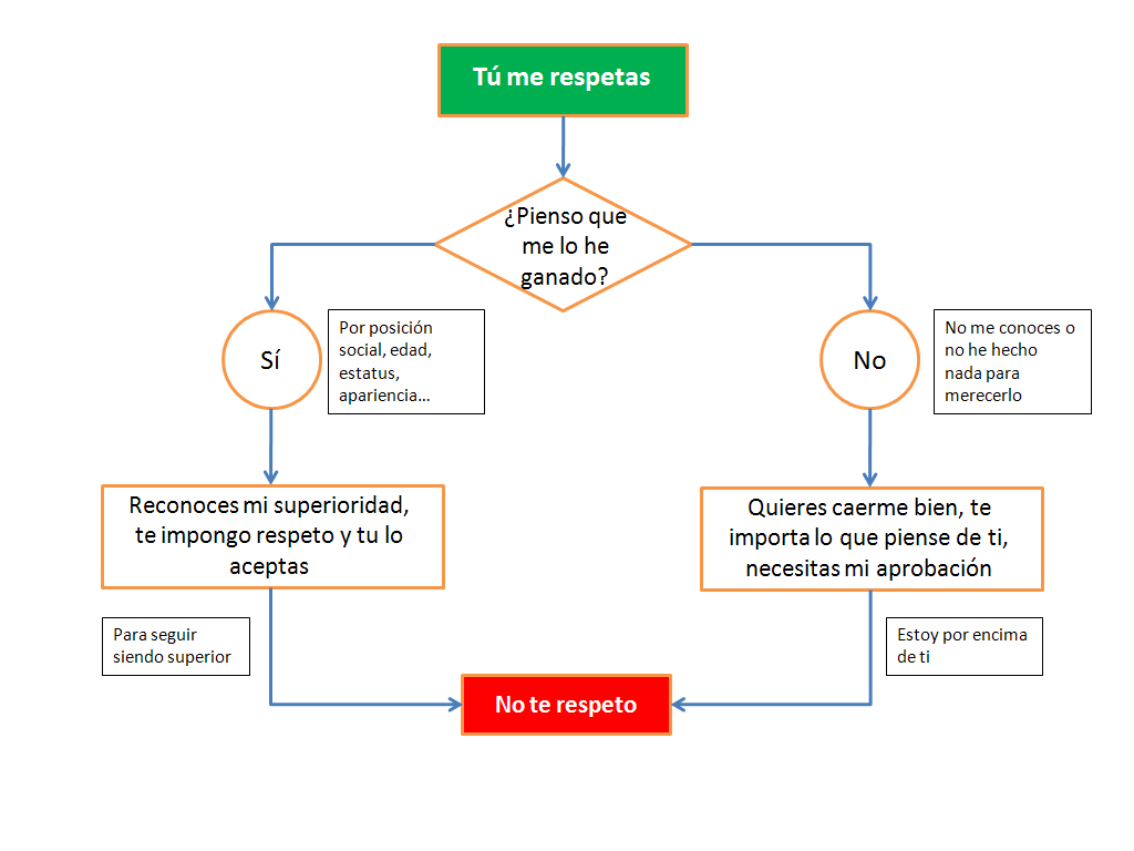 Cuando tú respetas a alguien que no te devuelve el respeto en la misma medida, implicitamente te estás colocando en una posición de inferioridad respecto a esa persona. Y a partir de ahí, toda la interacción ya está viciada por ese hecho.