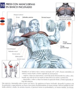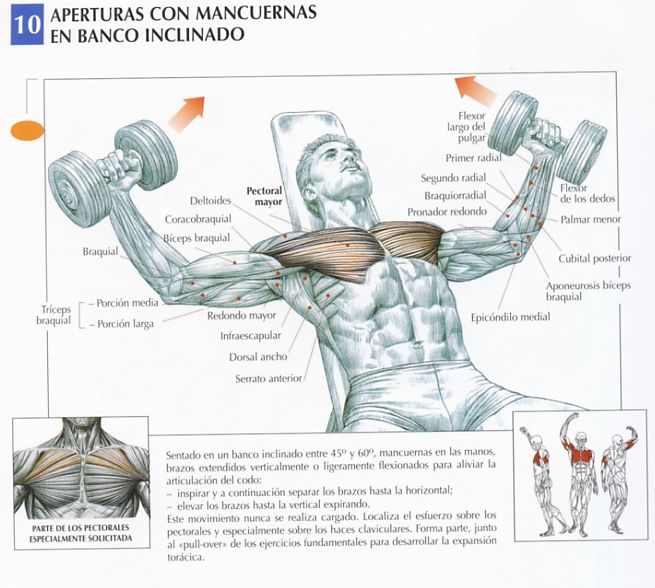4- Apertura inclinada con mancuerna (anchura pectoral superior).