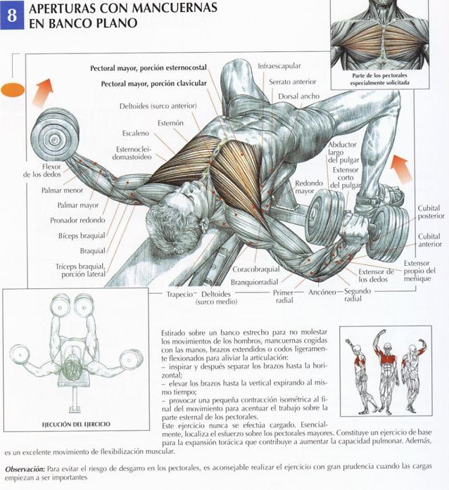 2- Apertura horizontal con mancuerna (anchura del pectoral mayor).