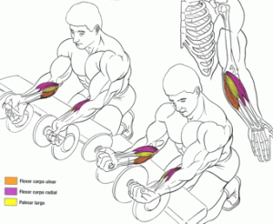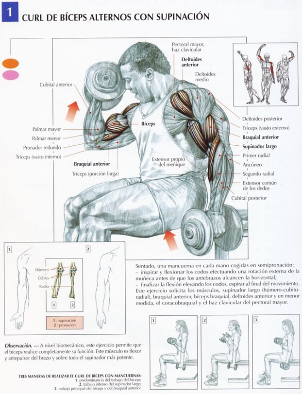 Hay que trabajar tres músculos principalmente: bíceps, braquial y tríceps.