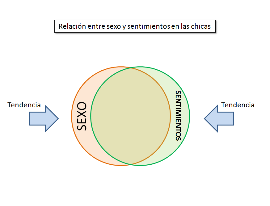 El enamoramiento es la única fuerza lo suficientemente grande como para vencer las fuerzas de repulsión y provocar que sexo y sentimientos se junten en un mismo espacio de acuerdo al gráfico anterior.